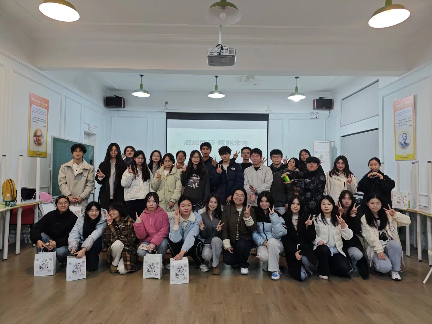 退组会上,老成员先参与“心连心”“共携手”“展未来”闯关游戏:“默契考验”借助动作传递心助会相关词语彰显协作,“祝福交换”以交换明信片传递新老成员心得与祝愿,“梦想收录”让大家写下未来期许。集齐三枚书签后,成员领取小礼品,随后进入团辅室。